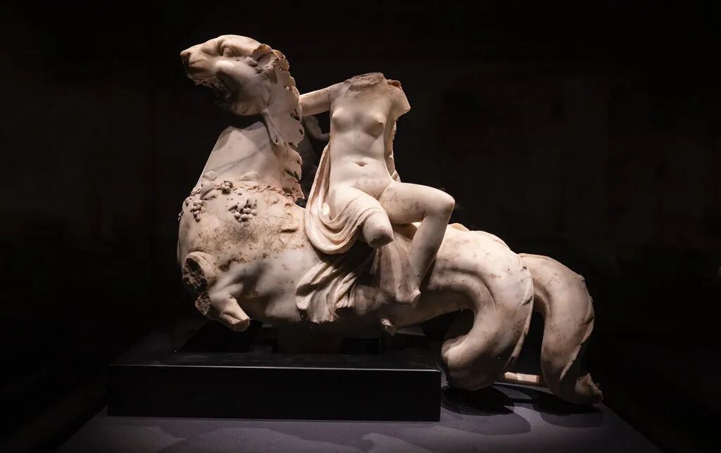 ▲2025年9月30日,湖南博物院特展“遇见庞贝:永恒之城”上的“驭兽海神”,该展览全价票60元。10月12日,湖南博物院改回原名“湖南省博物馆”,此时距离湖南省博物馆更名为“湖南博物院”仅三年多,引发关注和讨论。视觉中国丨图